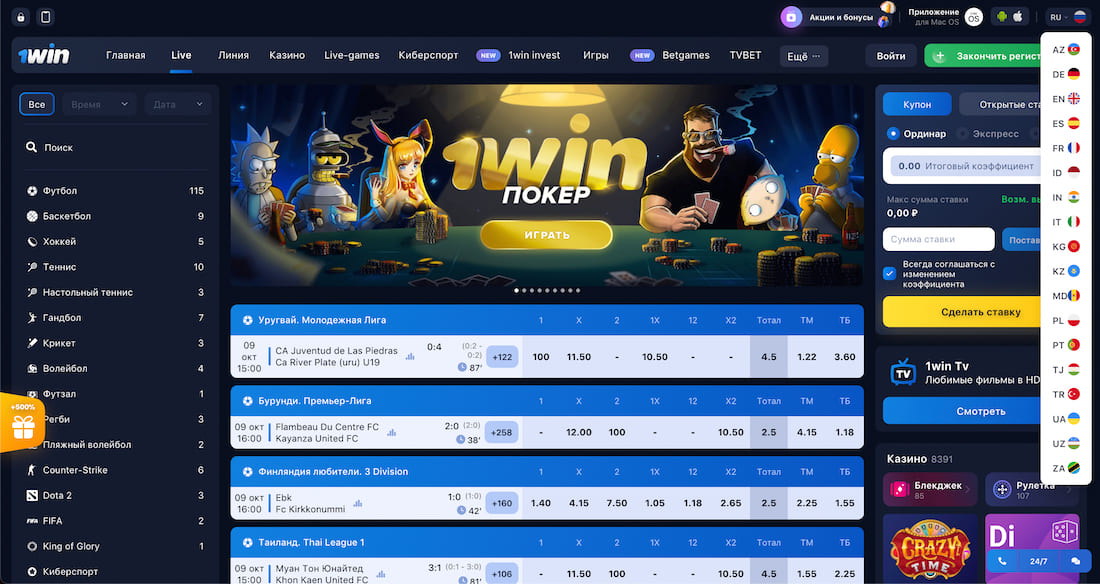 Официальный сайт 1Win выполнен в сдержанном и лаконичном стиле, что позволяет пользователям сосредоточиться на основном функционале без отвлечения на излишние дизайнерские элементы. Платформа предоставляет широкие возможности для ставок на спортивные события в прематче и лайве, а также для участия в азартных играх.